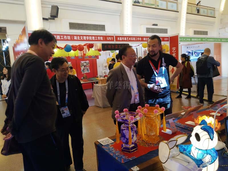 开幕式结束后,教育部党组成员、部长助理刘大为,上海市副市长翁铁慧,教育部体育卫生与艺术教育司副巡视员万丽君来到我校民俗彩灯工作坊参观,美术学院设计系主任黄磊为各位领导、专家进行现场讲解。