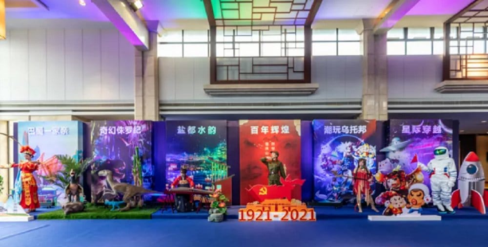 以中华彩灯大世界作为“场景化灯会”的承载空间,突破传统的陈式思维,在“用灯会讲故事”的基础上,引入现代科技方式及专业运营,与传统灯会技法结合,全方位打造集观灯游乐、餐饮娱乐、文创演艺等于一体的沉浸式体验主题灯会。同时,在互联网时代也引入更多人民群众喜闻乐见的方式,将自贡灯会的文化内核更多维度的呈现,从而生动形象的展示自贡打造“全域夜间旅游”的良好风貌。