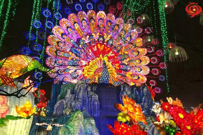 孔雀开屏主题元素花灯
